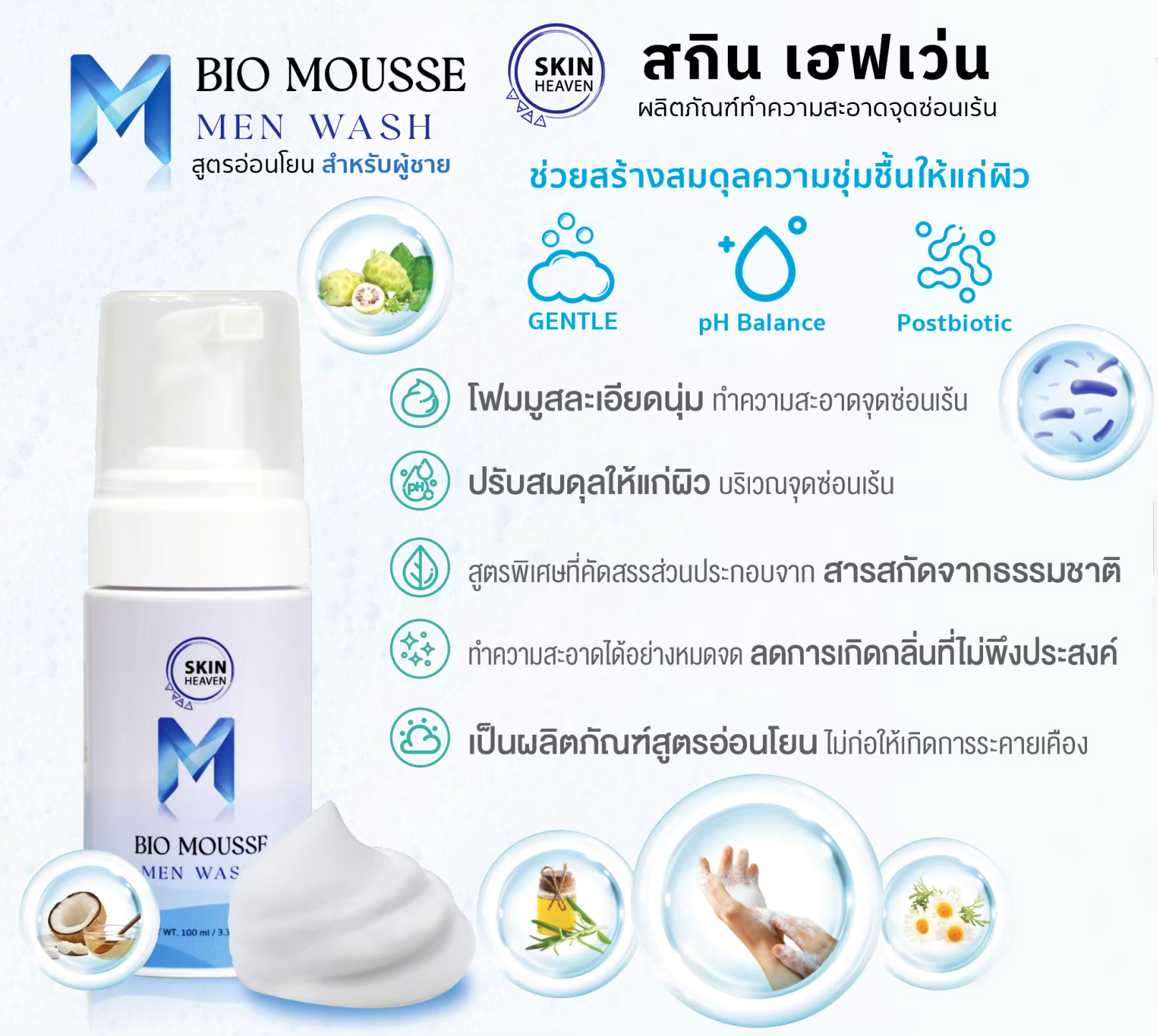 ผลิตภัณฑ์ทําความสะอาดจุดซ่อนเร้น สําหรับผู้ชาย ให้ความรู้สึก สะอาด สดชื่น สุขภาพดีด้วยสูตรพิเศษที่คัดสรรส่วนประกอบจาก สารสกัดจากธรรมชาติที่มีประสิทธิภาพปลอดภัยและเหมาะกับ ผู้ชาย ได้เป็นผลิตภัณฑ์สูตรอ่อนโยน ให้โฟมฟองมูสนุ่มละเอียด มอบสัมผัสที่อ่อนโยน ไม่ก่อให้เกิดการระคายเคืองทําความสะอาด ได้อย่างหมดจด ชะล้างจุลินทรีย์ที่ทําให้เกิดกลิ่นที่ไม่พึงประสงค์ ในขณะที่ไม่ทําลํายจุลินทรีย์ดีที่มีประโยชน์จึงยัง คงความสมดุล ของผิวไว้ได้ ทั้งยังมีส่วนผสมบํารุงผิวสําหรับผิวบริเวณนั้นโดยเฉพาะ ให้ความรู้สึกมั่นใจตลอดทั้งวัน ไม่อับ ชื้นและไม่เกิดกลิ่น